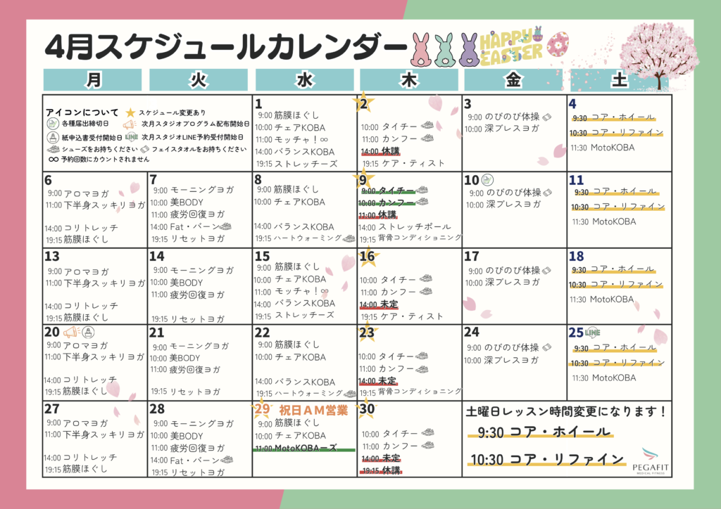 こちら4月のスタジオプログラムです↓